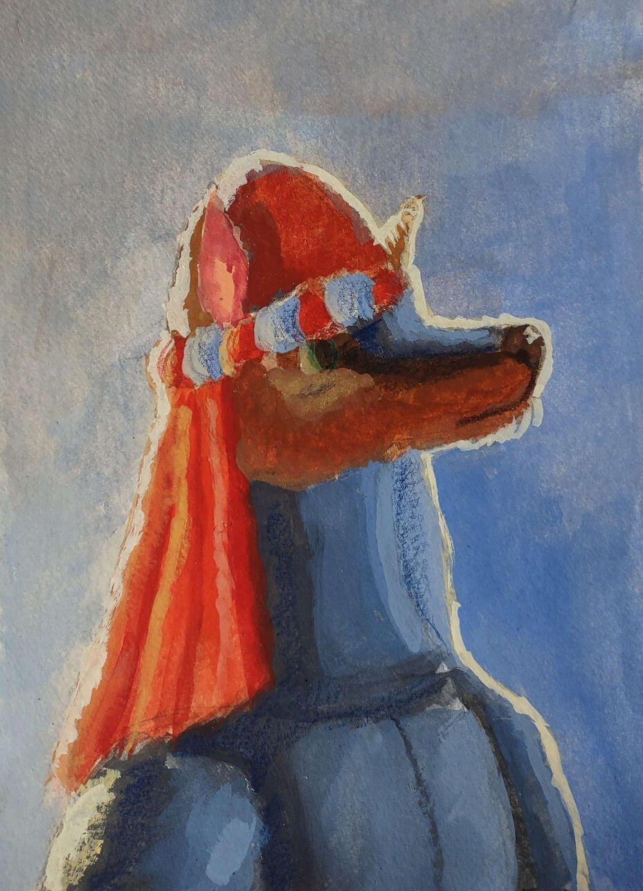 A painting of a character rendered in gouache and detailed with coloured pencil. These are offered as busts, halfbodies, and full-bodies, and can depict the character in clothing pre-1910.